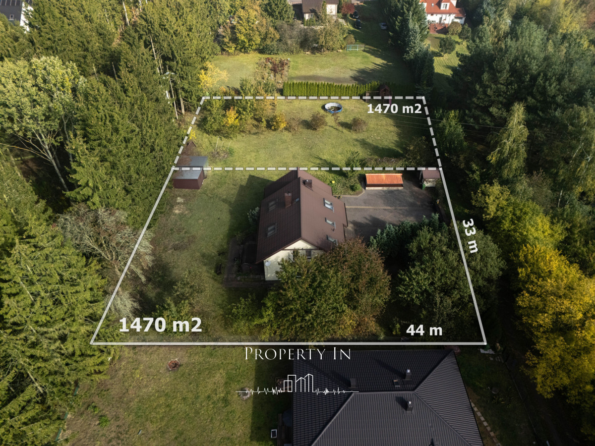 Działka o powierzchni 1470 m² jest w pełni ogrodzona i zagospodarowana - znajdziesz tu duży ogród, miejsce na relaks i spotkania z rodziną, a otulina lasu zapewnia pełną prywatność i ciszę.