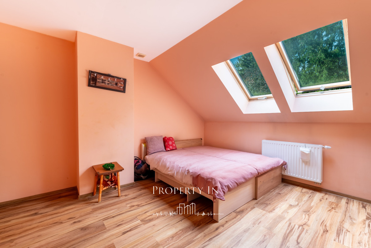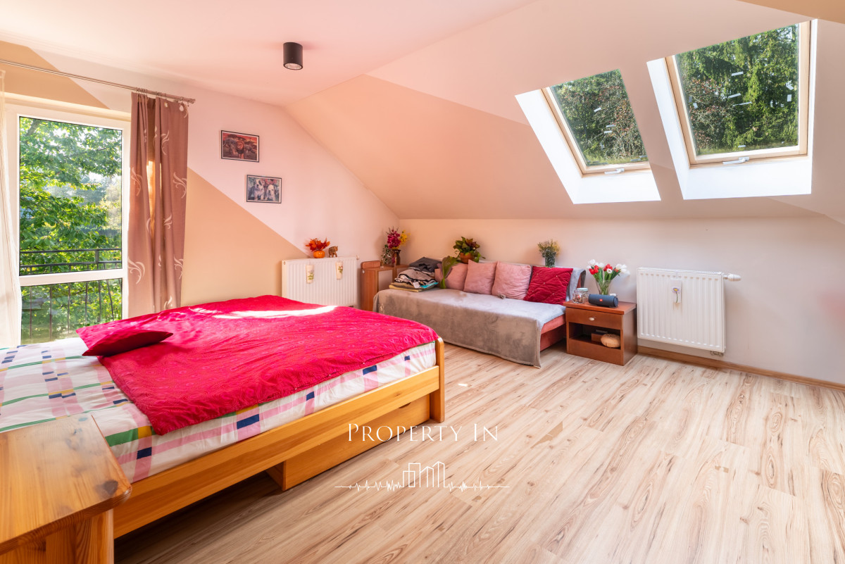• Piętro: cztery sypialnie, duża łazienka, garderoba, balkon z widokiem na las.