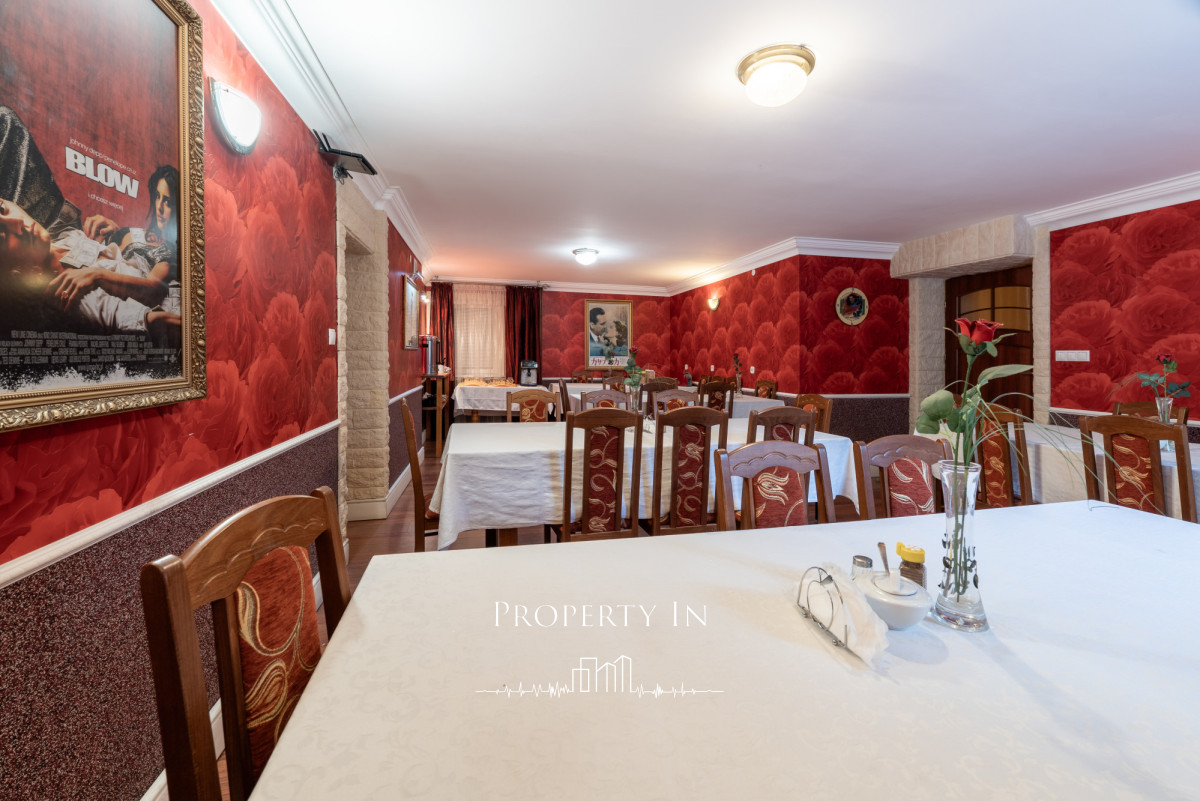 • działające zaplecze gastronomiczne (restauracja/kuchnia) - możliwość zaadaptowania 4 pomieszczeń na pokoje,