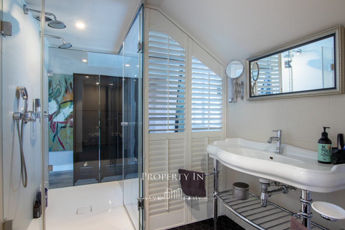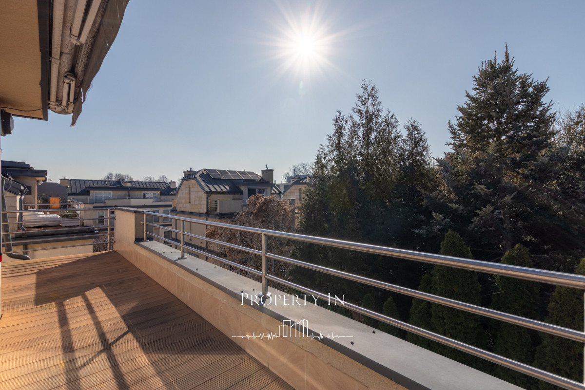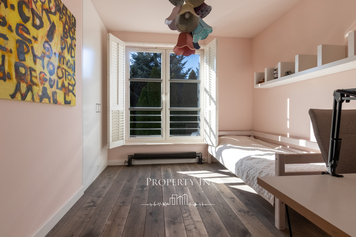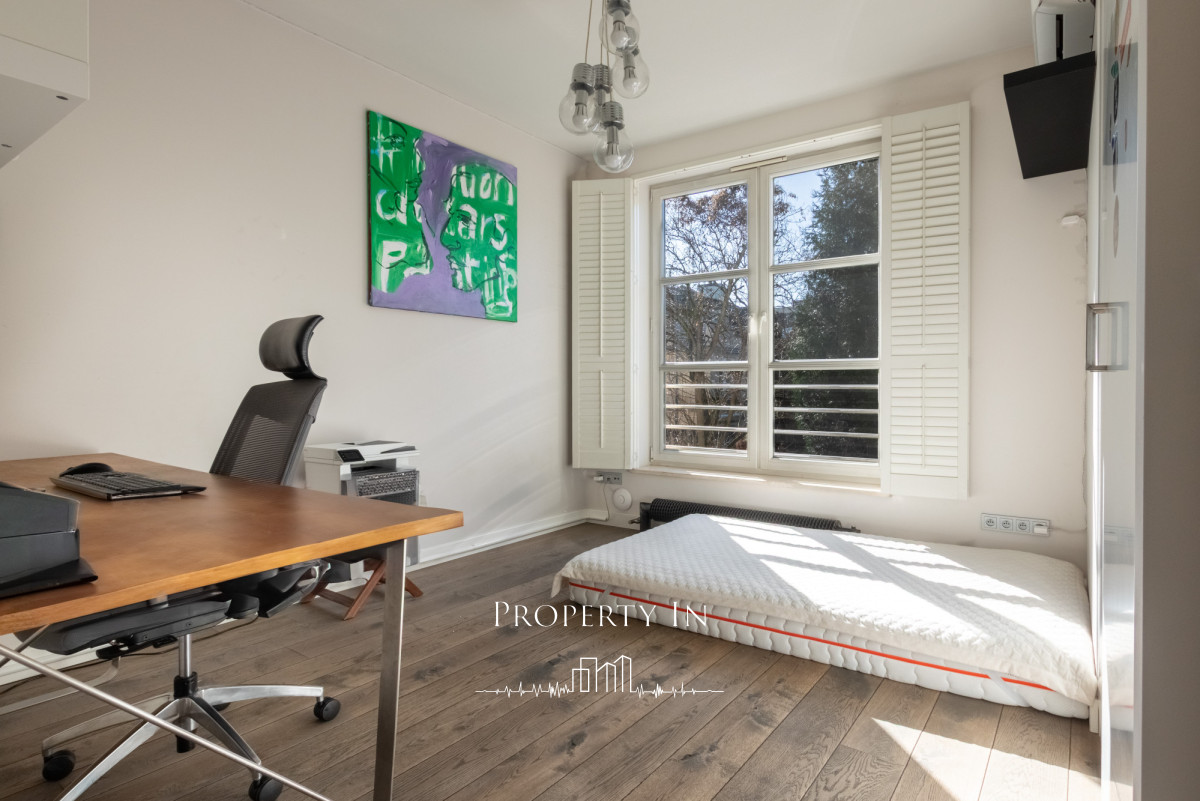 Drugie piętro:Główna sypialnia na całym poziomie o powierzchni około 22 m² to wyjątkowo jasne i przestronne pomieszczenie, które zapewnia komfort oraz funkcjonalność. Na piętrze zlokalizowana jest także przeszklona łazienka z prysznicem. Dzięki dużym panoramicznym oknom na dwóch ścianach wnętrze jest doskonale doświetlone naturalnym światłem przez cały dzień. Z sypialni bezpośrednie wejście do garderoby. Dodatkowym atutem jest bezpośrednie wyjście na dwa tarasy, które pozwala cieszyć się świeżym powietrzem o każdej porze dnia.