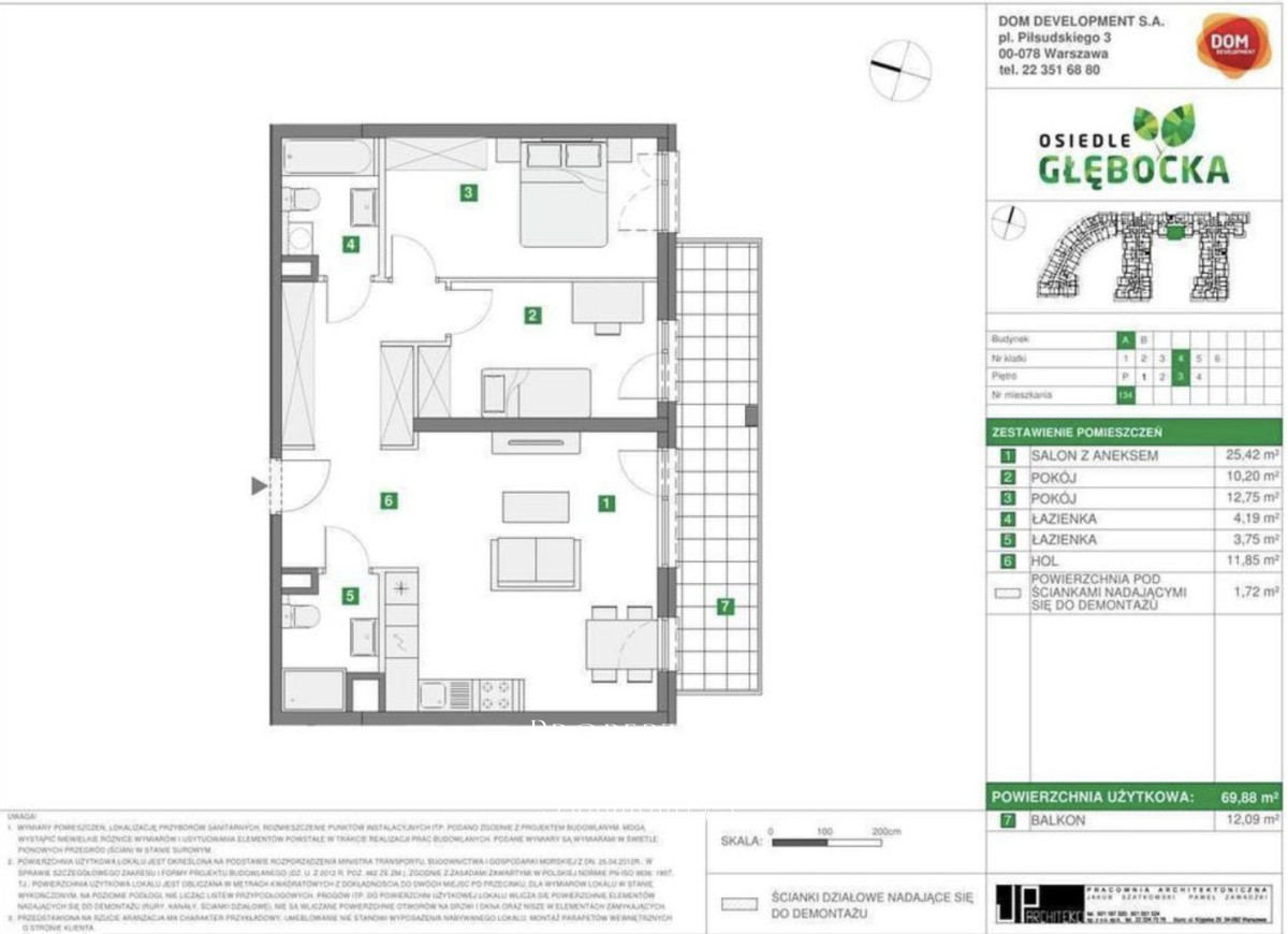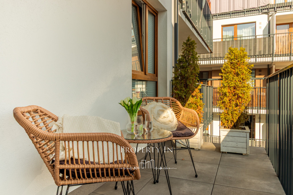 Mieszkanie znajduje się na zamkniętym, monitorowanym i strzeżonym osiedlu wybudowanym w 2022 roku przez Dom Development. To nowoczesna, kameralna zabudowa z windą, zaprojektowana z myślą o komforcie mieszkańców. Części wspólne są zadbane, a samo osiedle zapewnia poczucie prywatności i bezpieczeństwa. Dodatkowym atutem jest obecność ochrony oraz spokojny charakter inwestycji.