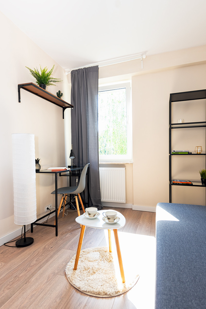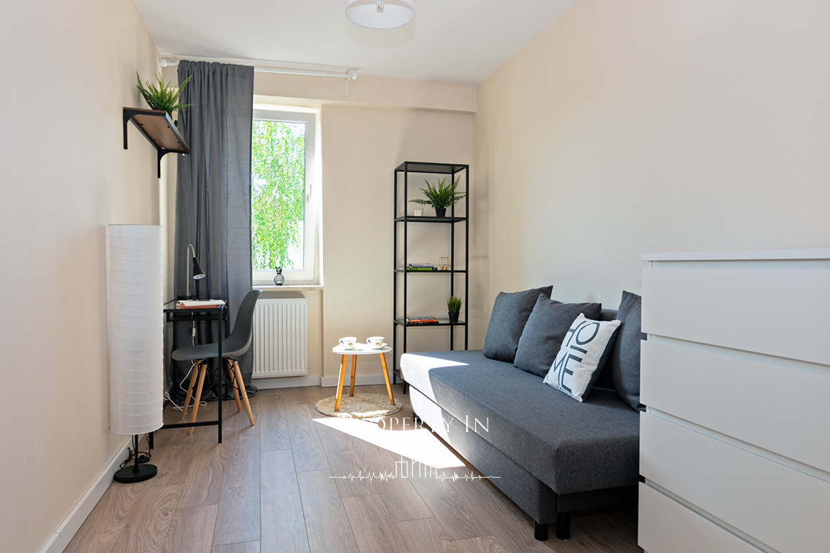Mieszkanie znajduje się w cichej i zielonej okolicy, bez bezpośredniej ekspozycji na ruchliwą ulicę.