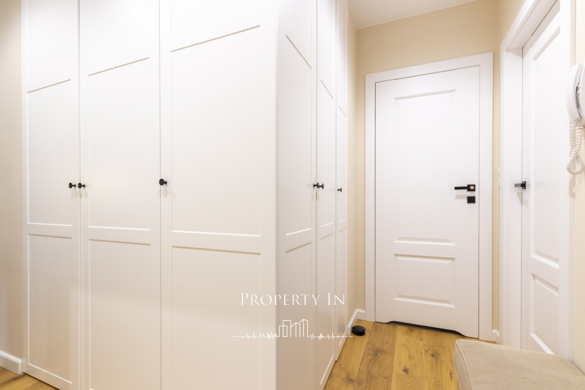 wysoki standard wykończenia- bardzo duża szafa w zabudowie w przedpokoju