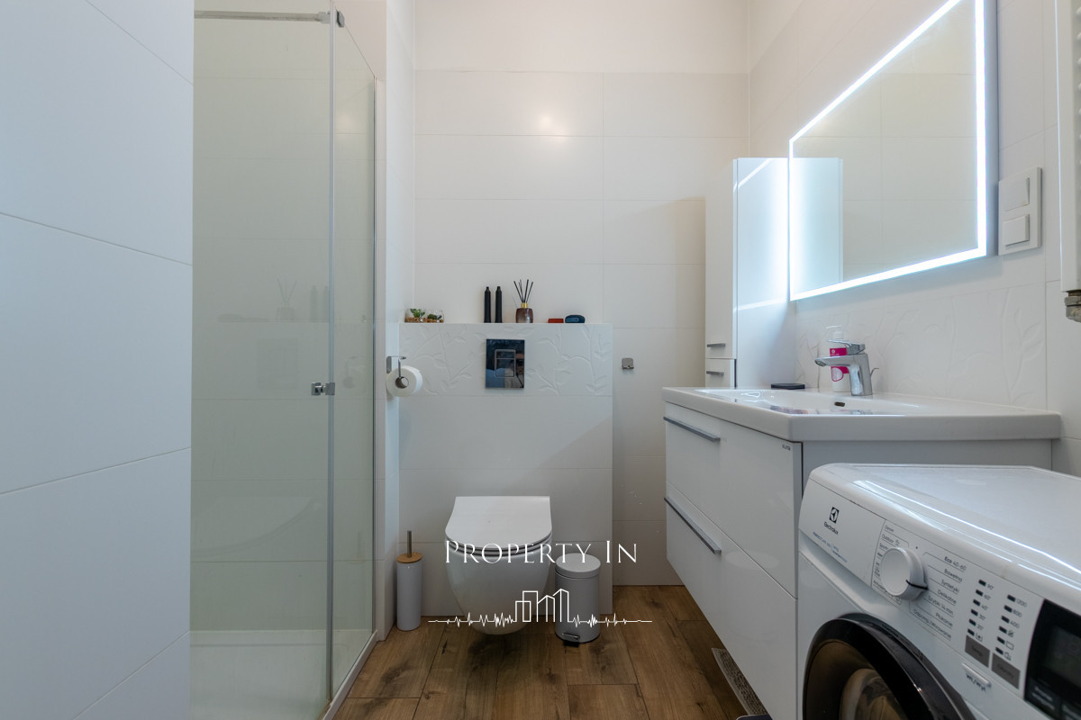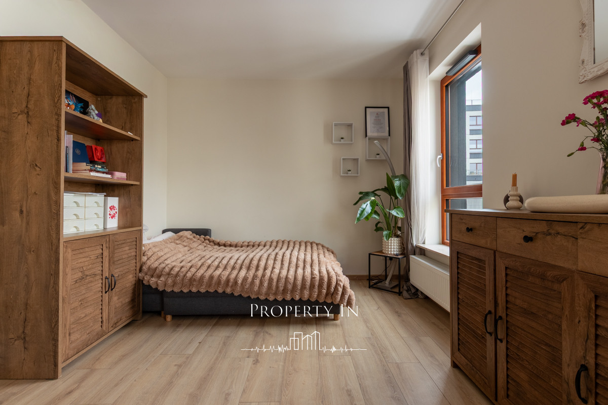 W pobliżu znajdują się lokalne punkty usługowe, sklepy, restauracje, biurowce, placówki medyczne, szkoły, przedszkola i tereny zielone, takie jak Park Arkadia. Do centrum miasta dojedziesz w 15 minut, a na lotnisko Chopina jeszcze szybciej.