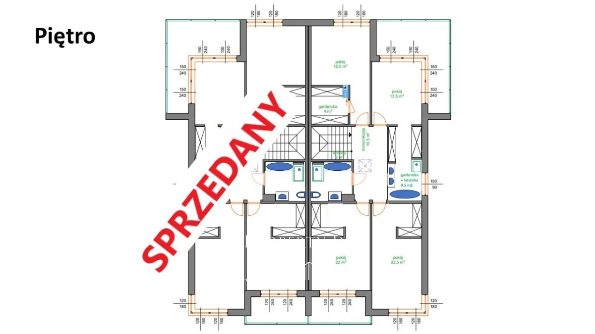 Piętro:- 3 sypialnie